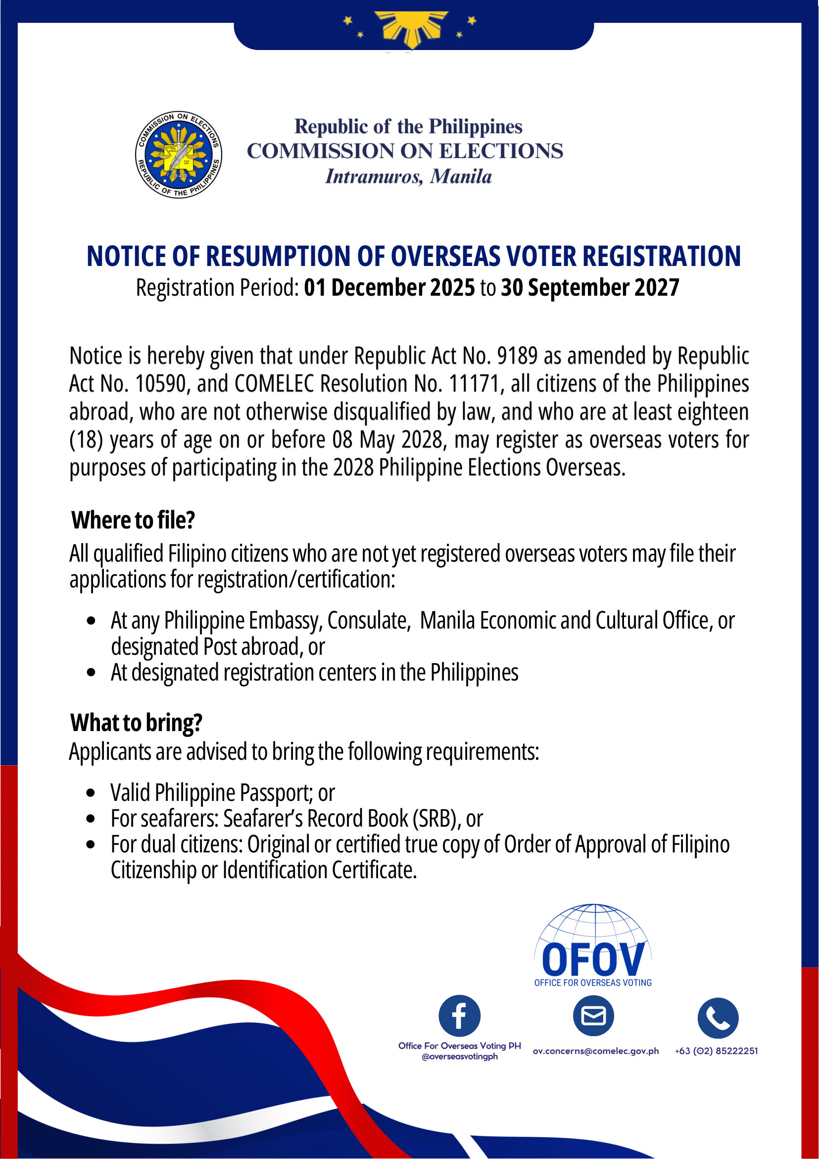 View latest update on visa-free entry to the Philippines and Balikbayan Program, as well as instructions on applying for various visa types from the Consulate.
