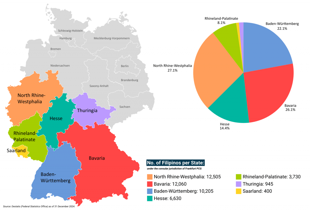 As of December 2024, there are an estimated 46,475* Filipinos residing in the seven states under the jurisdiction of the Consulate.