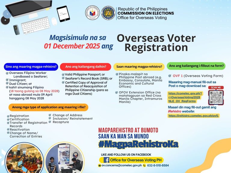 The overseas voter registration period for the said elections is from 01 December 2025 to 30 September 2027.