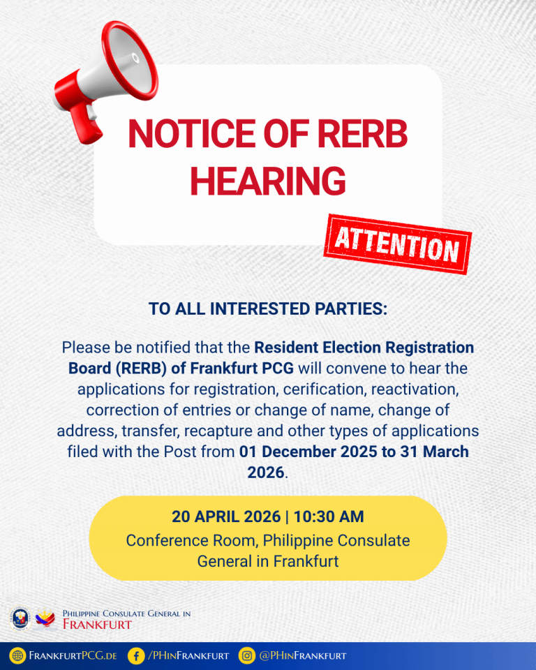 - For any inquiries or clarifications, please email the Consulate directly at overseasvoting.frankfurtpcg@gmail.com.